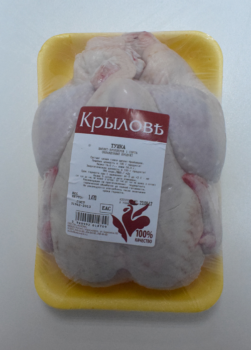 Характеристика товара: Тушка цыпленка – бройлера 1 сорта охлажденная т/м «Крылов»