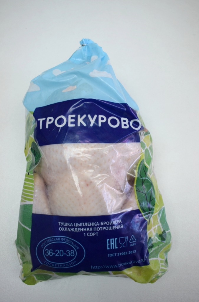 Характеристика товара: Тушка цыпленка – бройлера 1 сорта охлажденная т/м «Троекурово»