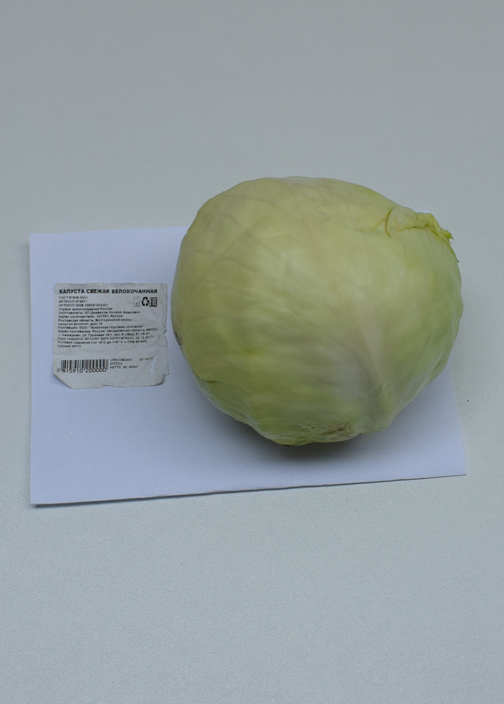 Характеристика товара: Капуста свежая белокочанная (изготовитель ИП Джавахов Исмаил Фаекович, РФ, Ростовская обл.)