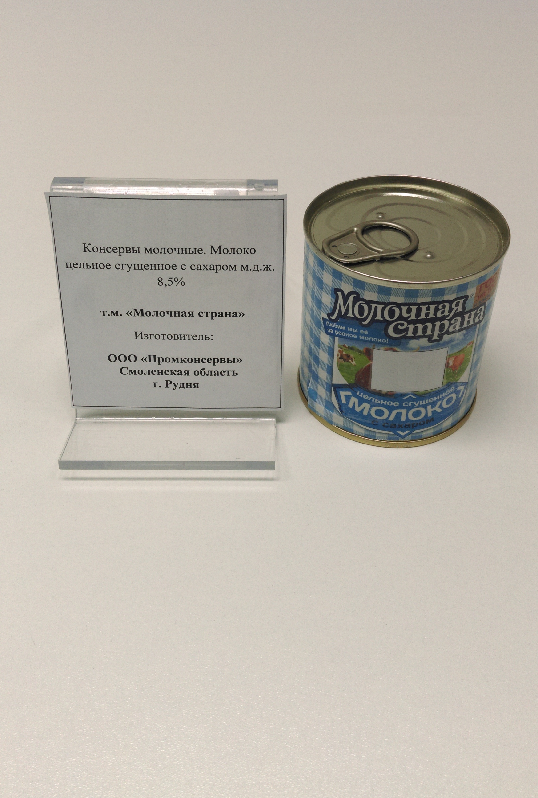 Характеристика товара: Консервы молочные. Молоко цельное сгущенное с сахаром м.д.ж. 8,5%, т/м «Молочная страна»