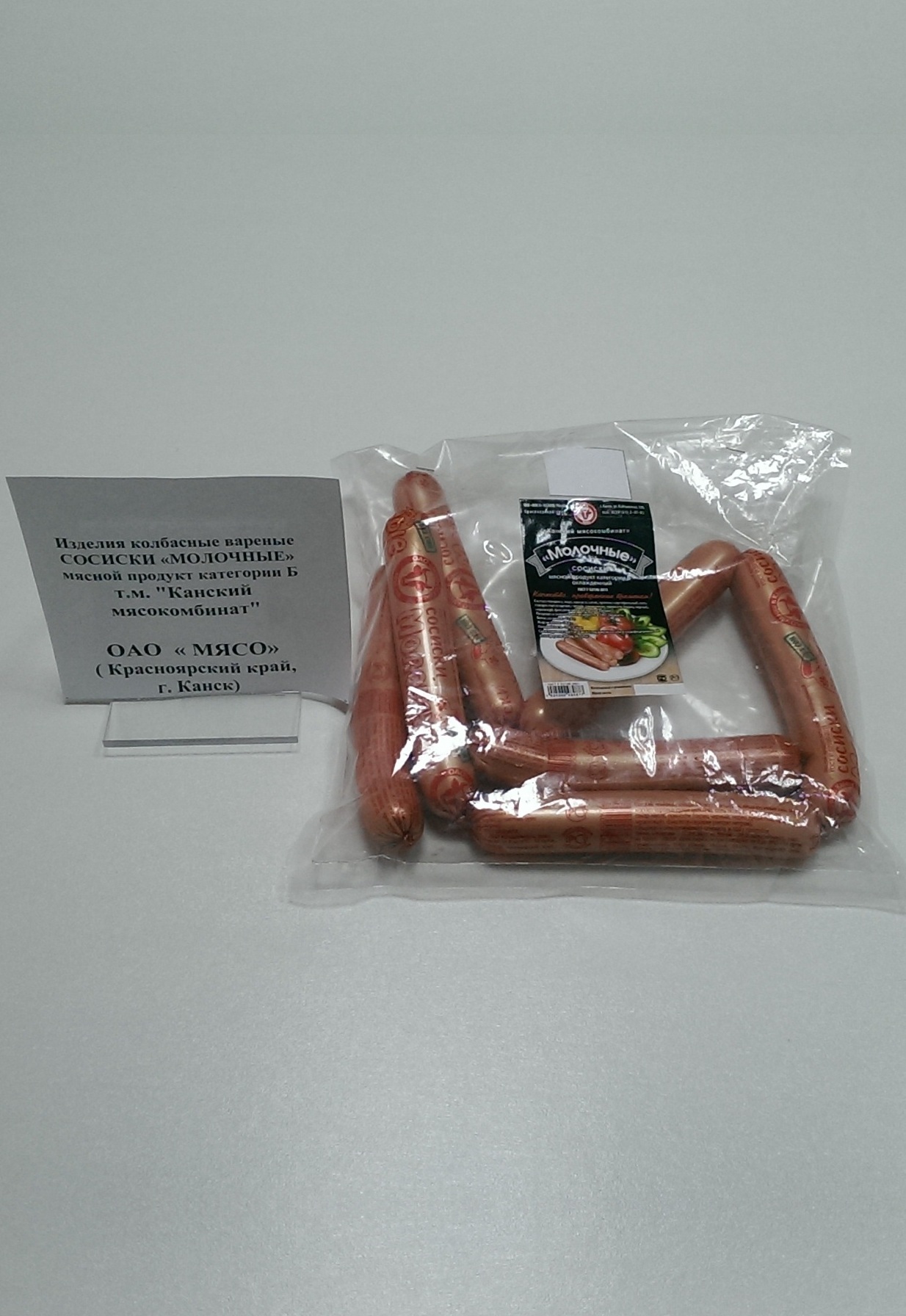 Характеристика товара: Сосиски «Молочные». Мясной продукт категории Б, охлажденный, т/м «Канский мясокомбинат»