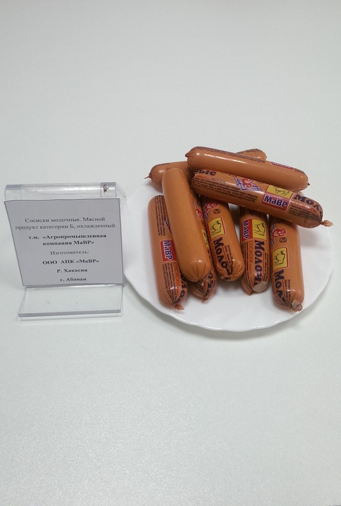 Характеристика товара: Сосиски «Молочные» Мясной продукт категории Б охлажденный т/м «Бурятмяспром»