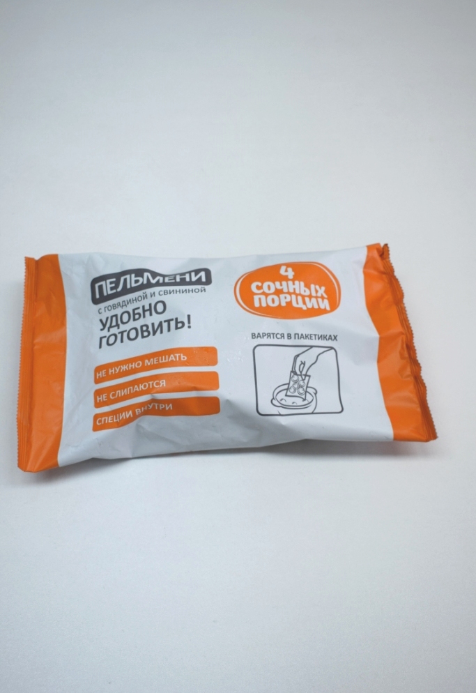 Характеристика товара: Полуфабрикат мясной в тесте категории В, замороженный пельмени с говядиной и свининой 4 сочных порции, ООО «Мороз»