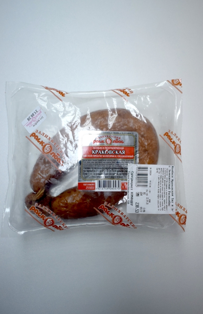 Характеристика товара: Мясной продукт кат.Б охлажденный.Колбаса полукопченая «Краковская» т/м «Залихватский расколбас»