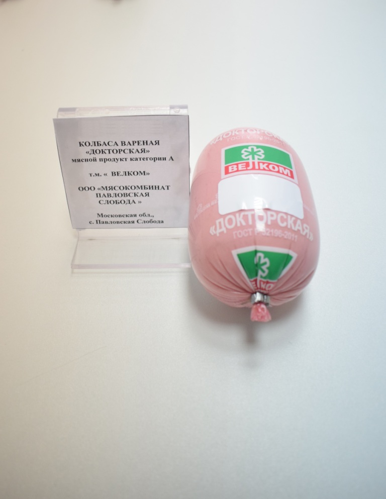 Характеристика товара: Колбаса вареная «Докторская».Продукт мясной категории А, охлажденный т/м «Велком»