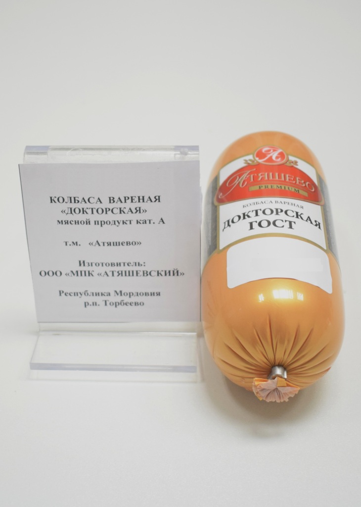 Характеристика товара: Колбаса вареная «Докторская» Мясной продукт категории А т.м. «Атяшево»