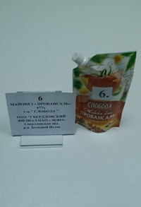 Характеристика товара: Согласно информации на потребительской упаковке м.д. жира 67%. Майонез упакован в потребительскую тару типа «дойпак».