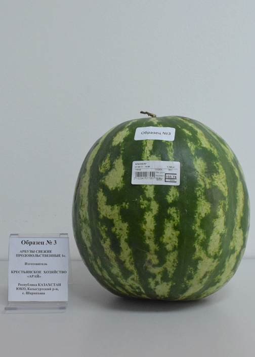 Характеристика товара: Арбузы свежие продовольственные 1 сорт т/м Крестьянское хозяйство «Арай»