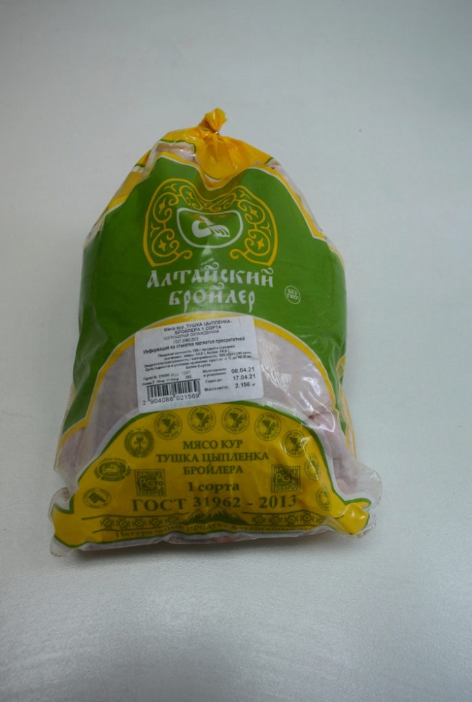Характеристика товара: Тушка цыпленка –бройлера 1 сорта потрошеная охлажденная т.м. «Алтайский бройлер»