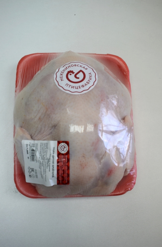 Характеристика товара: Тушка цыплят-бройлеров 1 сорта потрошеная охлажденная т.м. «Межениновская птицефабрика»