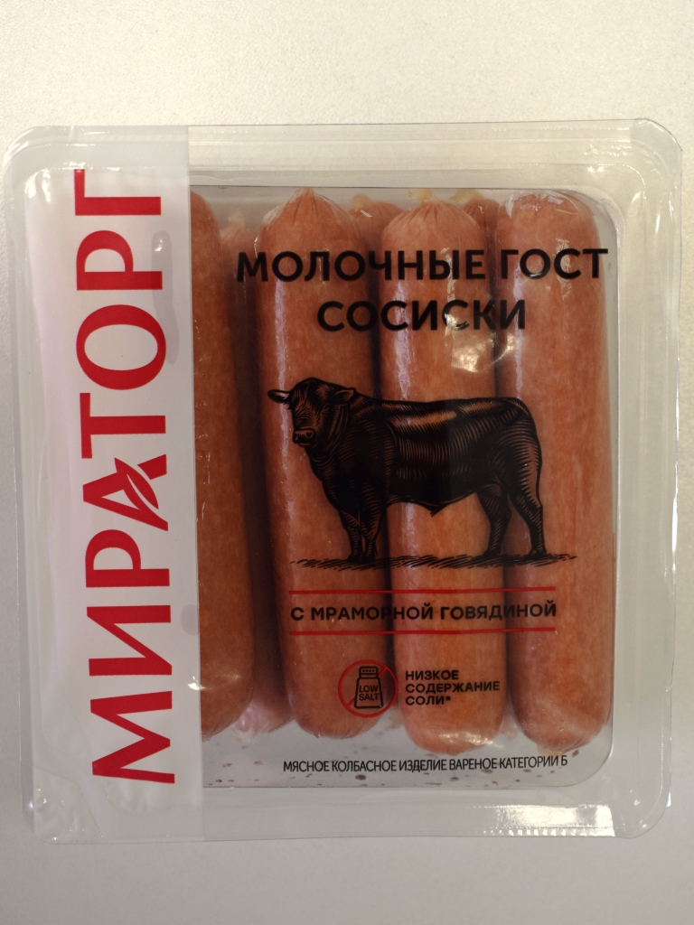 Характеристика товара: Мясное колбасное изделие вареное категории Б сосиски «Молочные»