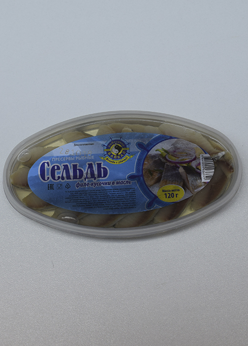 Пресервы рыбные. Сельдь филе-кусочки в масле. Продукт охлажденный. т/м "Рыбозавод Байкал"