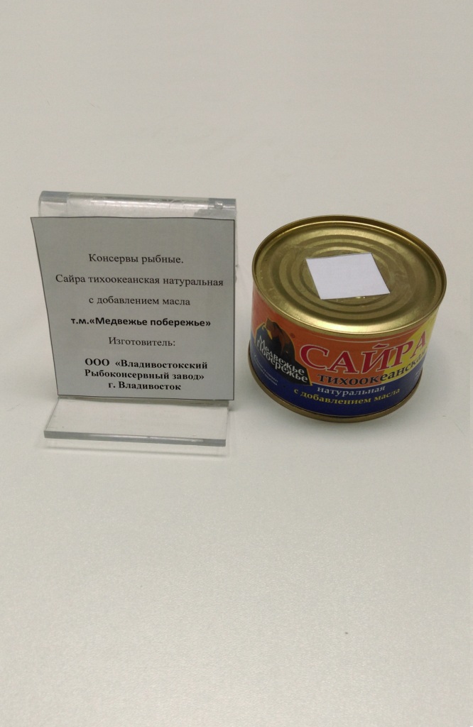 Характеристика товара: Консервы рыбные. Сайра тихоокеанская натуральная с добавлением масла т/м «Медвежье Побережье»
