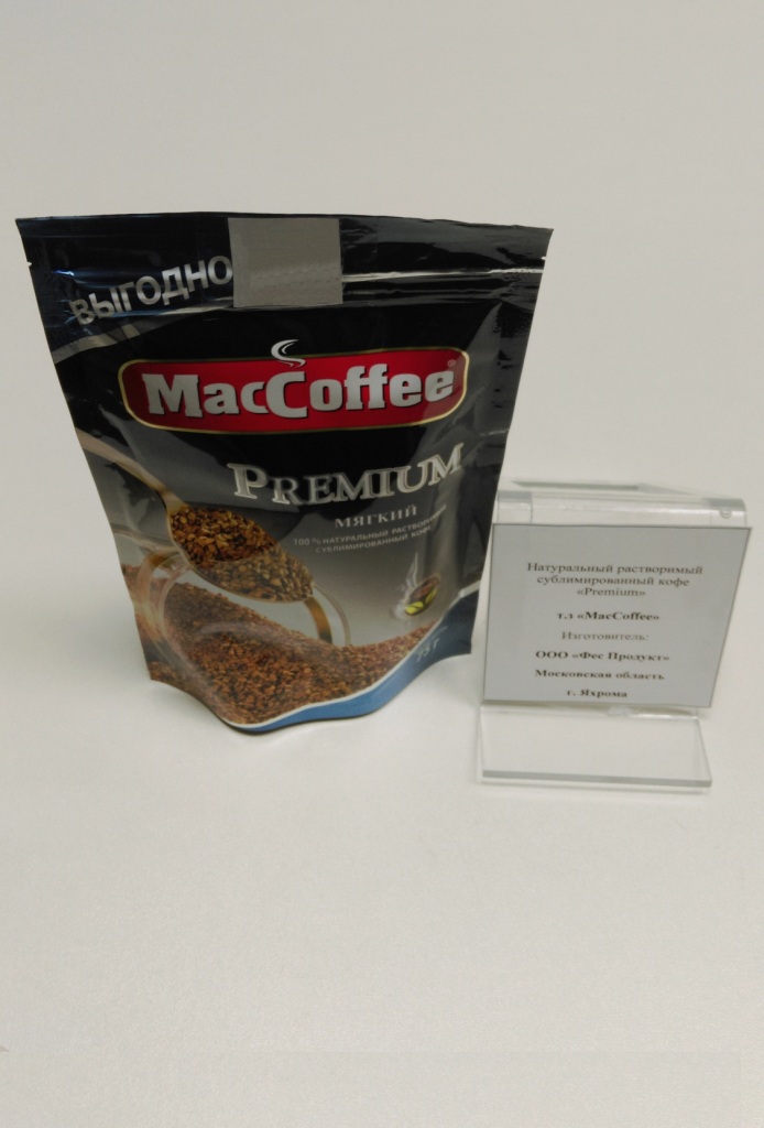 Характеристика товара: Натуральный растворимый сублимированный кофе «Premium» т/м «MacCoffee» владелец товарного знака «Фьюча Энтерпрайсиз Пте ЛТД», Сингапур