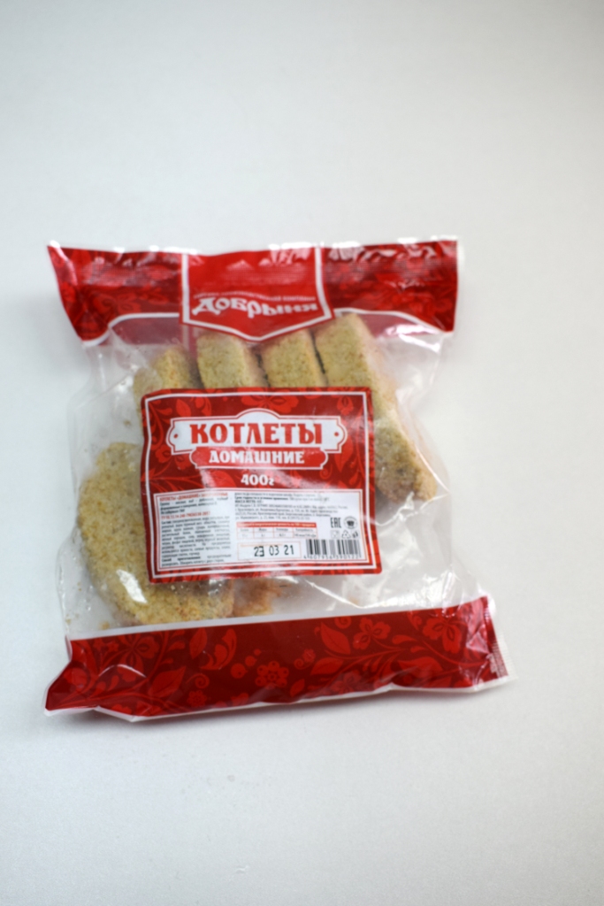 Характеристика товара: Полуфабрикаты мясные рубленые формованные в панировке, категории В котлеты «Домашние» т.м. «Торгово-производственная компания Добрыня»