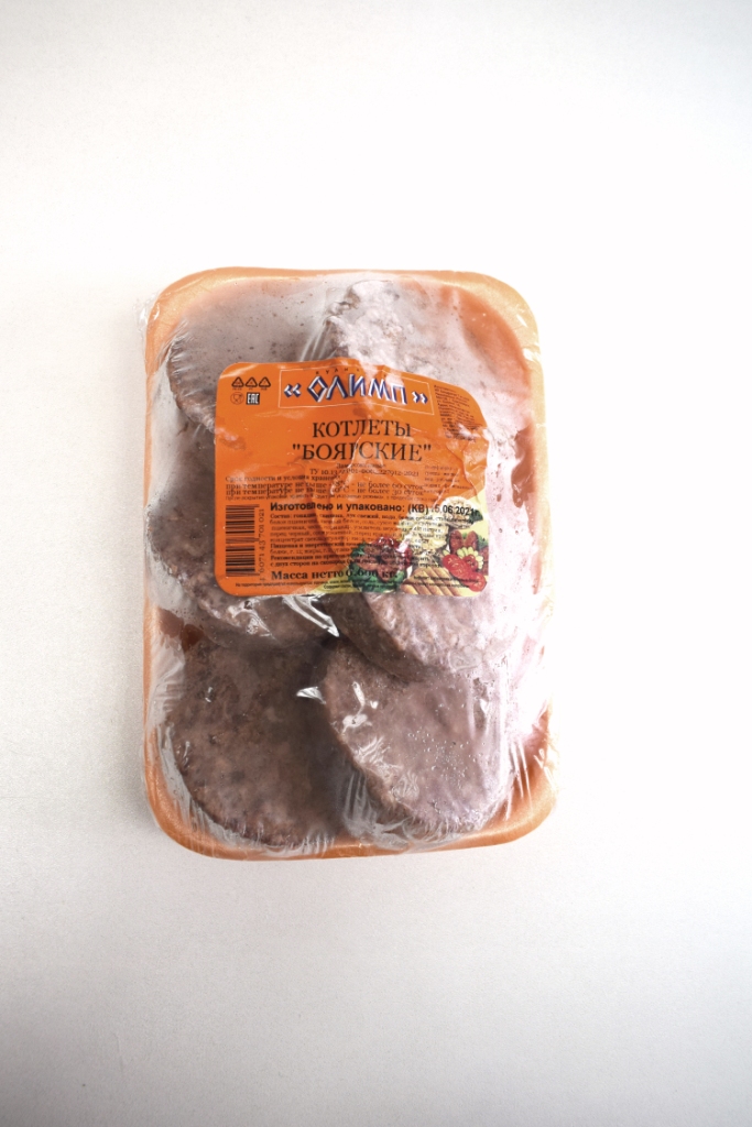 Характеристика товара: Полуфабрикаты мясные рубленые формованные замороженные категории В котлеты «Боярские» т.м. «Кулинарный Олимп»