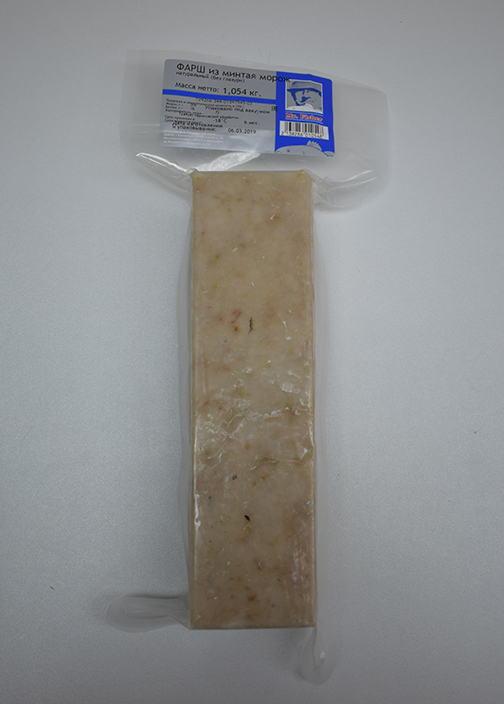 Характеристика товара: Фарш из минтая мороженый натуральный (без глазури) т/м «Mr. Fisher»