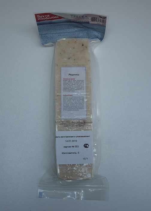 Характеристика товара: Фарш рыбный из трески, пищевой мороженый т/м «Бухта изобилия»
