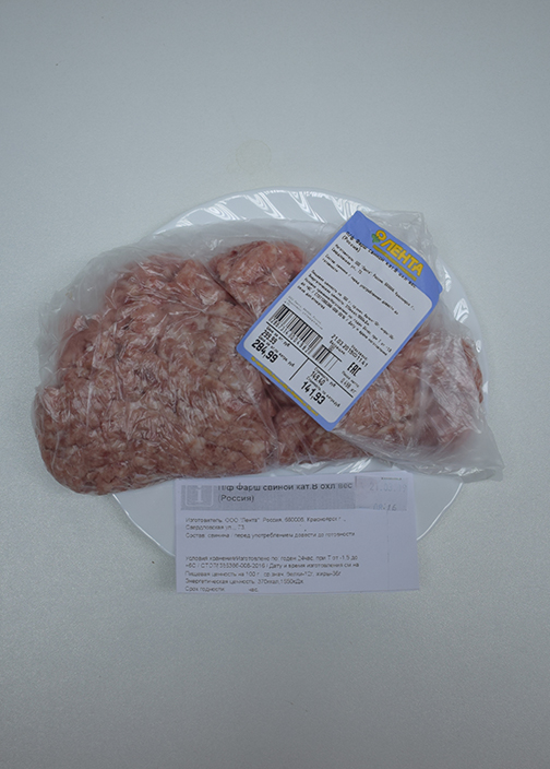 Характеристика товара: Фарш свиной, категории В, охлажденный т/м ООО «Лента»
