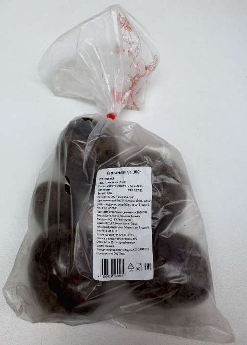 Упакована в полиэтиленовые пакеты (коды 4, LDPE) м.н. 1,0 кг. Замечания по маркировке: не полностью указано наименование продукта, не указаны ботанический и товарные сорта.