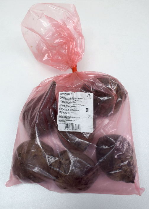 Упакована в полиэтиленовые пакеты (код материала 2, HDPE) м.н. 1,0 кг. Замечания по маркировке: не полностью указано наименование продукта, ботанический сорт.