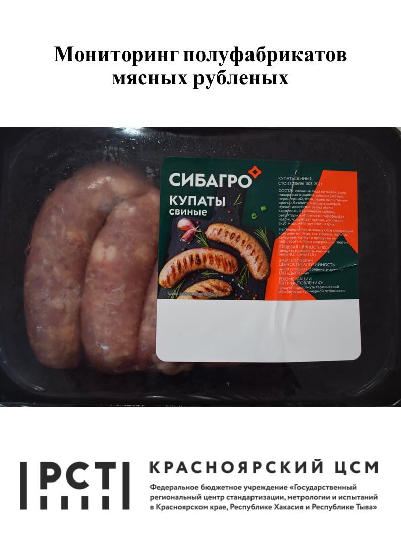 Мониторинг полуфабрикатов мясных рубленых проведен ФБУ «Красноярский ЦСМ» согласно письму Министерства сельского хозяйства Красноярского края (исх № 11-25/908 от 20.02.2024), заявкам, поступившим на сайт «Проднадзор. Инфо» и плану проведения мониторингов ФБУ «Красноярский ЦСМ» на 2 кв. 2024 года с целью оценки качества и безопасности пищевой продукции, реализуемой на территории Красноярского края. Для проведения мониторинга в торговых сетях г. Красноярска были приобретены 9 образцов полуфабрикатов мясных рубленых, изготовленных в Красноярском и Алтайском краях, Омской, Брянской и Томской областях, Республике Татарстан. На момент приобретения образцов продукции в торговых сетях нарушений условий хранения не установлено. Продукция после приобретения ее в торговых сетях была уложена в сумку - холодильник и доставлена в ФБУ «Красноярский ЦСМ». После доставки продукции в ЦСМ она была направлена для испытаний. В ходе проведения мониторинга продукция исследовалась в аккредитованном испытательном центре (ИЦ) ФБУ «Красноярский ЦСМ» по микробиологическим показателям. Кроме того, продукция в ходе проведения мониторинга была проанализирована по маркировке потребительских упаковок в части указания информации о наименовании продукта, предприятии-изготовителе, дате изготовления и сроках годности, условиях хранения, составе и др. на соответствие требованиям ТР ТС 022/2011 «Пищевая продукция в части ее маркировки», ТР ТС 034/2013 «О безопасности мяса и мясной продукции», ТР ЕАЭС 051/2021 «О безопасности мяса птицы и продукции его переработки».