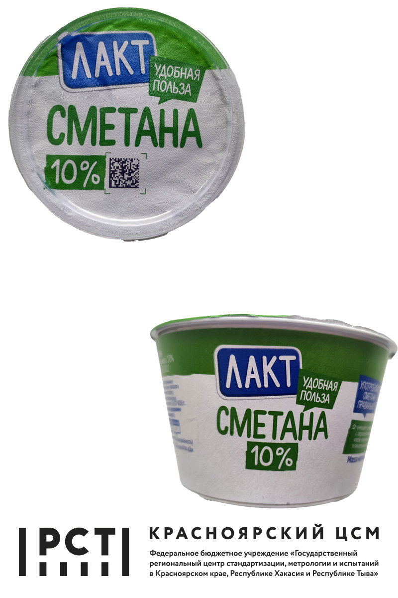 Для проведения мониторинга в торговых сетях г. Красноярска было закуплено восемь образцов сметаны м.д.ж. 10,0 %, 15,0 %, 20,0 %, 25,0 %, изготовленных в Алтайском и Красноярском краях и в Кемеровской области. Согласно маркировке потребительских упаковок продукция изготовлена в соответствии с требованиями ТР ТС 033/2013 «О безопасности молока и молочной продукции», ГОСТ 31452-2012 «Сметана. Технические условия». В соответствии с требованиями нормативной документации и информации, указанной изготовителями на маркировке потребительских упаковок, сметана должна храниться в течение установленного срока годности при темпера-туре от плюс 2 до плюс 6 град. С.