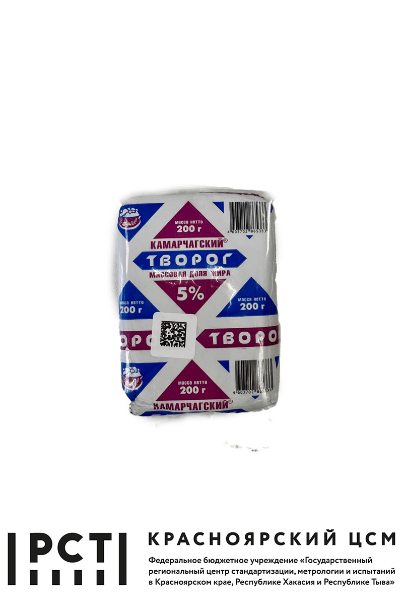 Согласно протоколу испытаний № 1574 от 19.09.2025 ИЦ ФБУ «Краснояр­ский ЦСМ» творог м.д. ж. 5,0 % по всем проверенным физико-химическим и мик­робиологическим показателям соответствует требованиям нормативно-правовой и нормативной документации. Наличие крахмала, сорбиновой и бензойной кислот, растительных жиров в жировой фазе продукта не установлено.