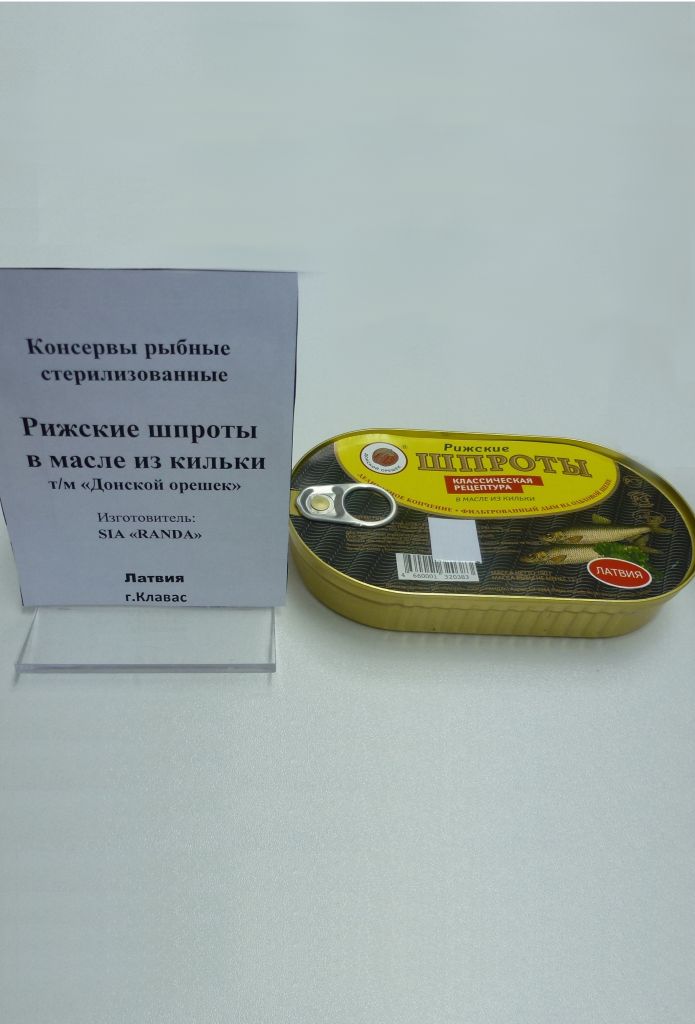 Консервы рыбные «Рижские шпроты в масле из кильки» т/м «Донской орешек»