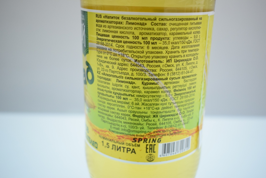 Специалистами ФБУ «Красноярский ЦСМ» совместно со специалистами ООО «Хак ЦСМ» в октябре месяце были закуплены образцы напитка безалкогольного сильногазированного на ароматизаторах «Лимонад», производитель ИП Цирикидзе О.О. (г. Омск), торговой марки «Напитки завода мадам Лимоновой», с целью оценки качества безалкогольного напитка.
