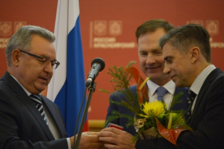 Торжественная церемония награждения победителей Всероссийского конкурса федеральной программы «100 лучших товаров России» состоялась 19 декабря. Напомним, в числе победителей оказалось 27 предприятий и организаций Красноярского края, выпускающих продукцию и оказывающих услуги в разных секторах экономики. Звания лауреата были удостоены 15 видов продукции и услуг. Среди них - шоколадные конфеты «Радость в ладошке» (ЗАО «Краскон»), масло сливочное «Крестьянское» высшего сорта и сыр «Качкавал» (ОАО «Молоко», Минусинск), папоротник «Орляк» соленый (ЗАО «Заготовительно-производственный комплекс Крайпотребсоюза), яблочные чипсы в ассортименте (ИП Журович). Еще 15 наименований продовольственных товаров из края награждены федеральными дипломами. Лауреатами в номинации «Промышленные товары для населения» признаны устройство, имплантируемое для коррекции искривлений позвоночника (ОАО «Красноярский машиностроительный завод»), деревянные оконные блоки с двухкамерным стеклопакетом (Деревообрабатывающий завод ЗАО «Сибагропромстрой») и микропредприятие «Центр спецодежды» за изготовление комплекта рабочей одежды под торговыми марками «Аматис» и «Кайман». номинации «Услуги производственно-технического назначения» второй год подряд звание лауреата было присуждено ОАО «В-Сибпромтранс» за ремонт и техническое обслуживание подвижного состава на собственных площадях. А в номинации «Услуги для населения» за методическое обеспечение программ подготовки инновационно ориентированных специалистов для металлургической промышленности Красноярского края и других регионов России награжден Красноярский индустриально-металлургический техникум. Звания дипломанта конкурса, которое дает право в течение двух лет использовать серебряный логотип программы «100 лучших товаров России», удостоен 21 вид продукции и услуг (золотой логотип используют его лауреаты). Почетными знаками «За достижения в области качества» награждены четыре руководителя краевых предприятий, 27 работникам будут вручены почетные знаки «Отличник качества». На награждении с приветственным словом выступил директор ФБУ «Красноярский ЦСМ» Василий Моргун. «Учитывая, что это единственный конкурс в России, курируемый государственными структурами и существующий уже более 15 лет, мы можем смело назвать его центральным событием в области качества. Важность конкурса велика еще и потому, что именно данное мероприятие обеспечивает для производителей необходимость увеличения уровней производства товаров, которых мы давно уже не видим на наших прилавках. Сегодня производится достаточное количество вспомогательного оборудования. Наблюдается особенно хорошая динамика в производстве оборудования для строительной отрасли. Потихоньку подтягивается наукоемкая продукция и электронная, не говоря уже о пищевой промышленности. Однако те темпы, которые мы ожидали получить в условиях импортозамещения, пока еще не достигнуты. Количество видов продукции легкой промышленности, особенно в производстве бытовой техники, могло бы быть лучше. Я вижу возможным увеличение темпов производства в этой области в 1,5 раза и надеюсь на то, что администрация и правительство края будут уделять больше внимания вопросам импортозамещения. Мы начали участвовать в федеральном конкурсе «100 лучших 